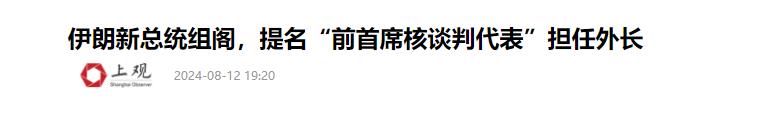 參考信源:《伊朗新總統組閣,提名“前首席核談判代表”擔任外長》上觀新聞2024-08-12 19:20