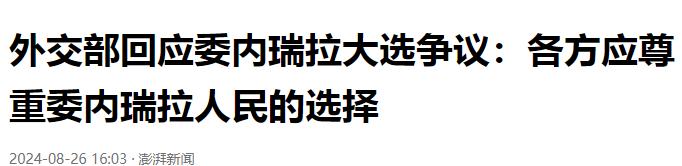 外交部回應委內瑞拉大選爭議:各方應尊重委內瑞拉人民的選擇——2024-08-26 16:03·澎湃新聞