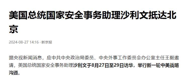 新京報 2024-08-27 14:16 《美國總統國家安全事務助理沙利文抵達北京》