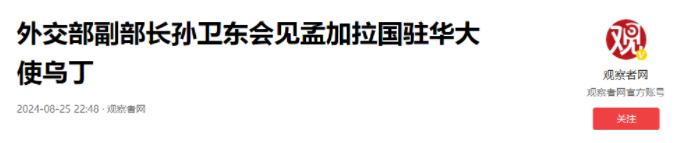 參考信源:《外交部副部長孫衛東會見孟加拉國駐華大使烏丁》——觀察者網,2024-08-25