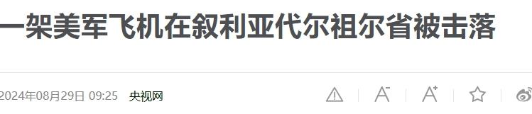 一架美軍飛機在敘利亞代爾祖爾省被擊落2024年08月29日09:25央視網