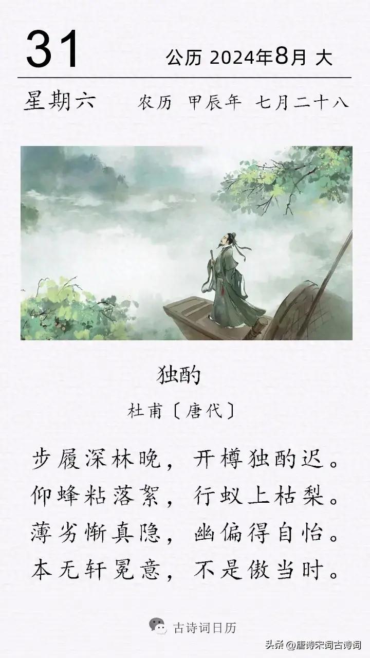 《嫌真子》:老杜《獨酌》詩云:“步履深林晚,開樽獨酌遲。仰蜂粘落絮,行蟻上枯梨。”……且獨酌則無獻酬也,徐步則非奔走也,以故蜂、蟻之類,細微之物,皆得見之。