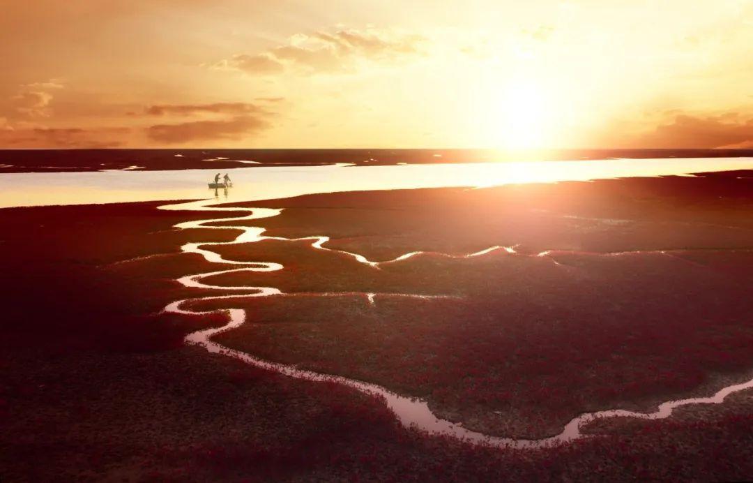 一道殘陽鋪水中,半江瑟瑟半江紅。