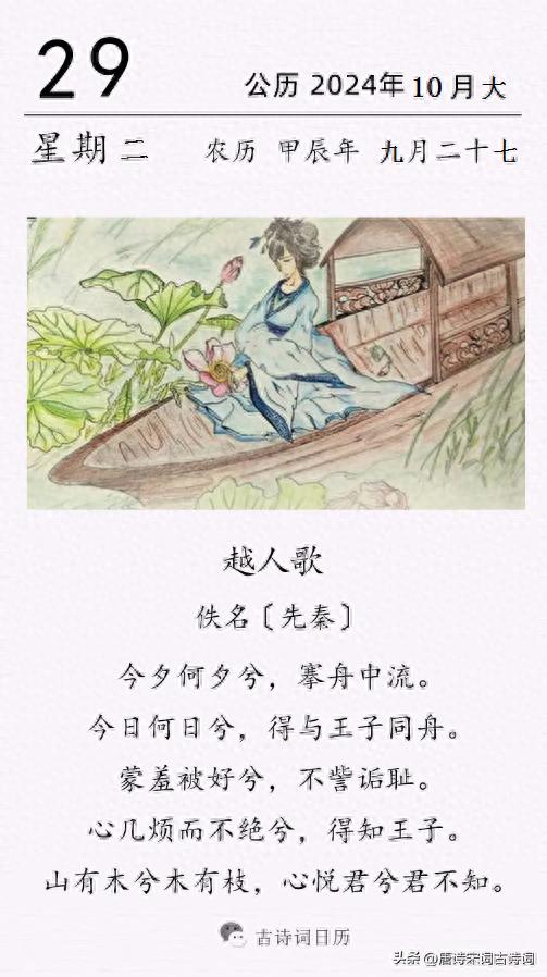 誰的心中沒有一個思慕的人,只要和他在一起,即便劃一次船,也覺得是今天最幸福的事情。女子反覆渲染,今天是一個好日子,今晚是一個好夜晚,要修的多大福報,才能與傾慕的王子同舟共遊呢!