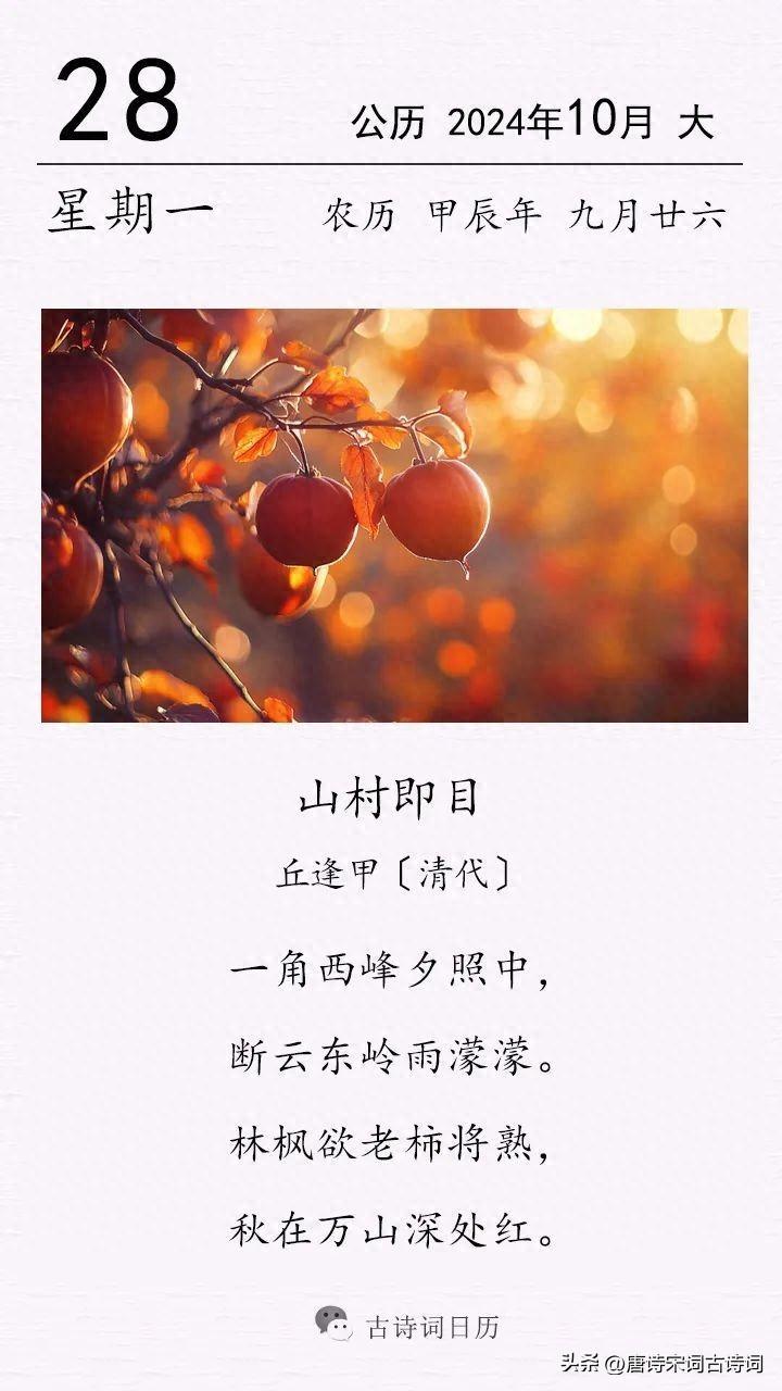 “林楓欲老柿將熟,秋在萬山深處紅。”三四兩句是啥說,林中楓葉紅了,行將飄落,另一邊,一個個柿子也紅彤彤的掛在枝頭,美麗的秋天就藏在羣山深處,將山林染成丹紅。這是寫“山村之顏色”。
