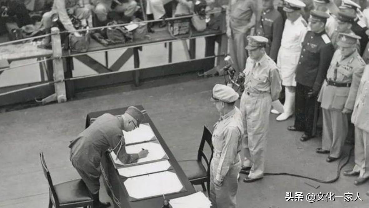 日本天皇向全世界宣告無條件投降,狂妄囂張不可一世的日本侵略者乖乖地在投降書上簽字。