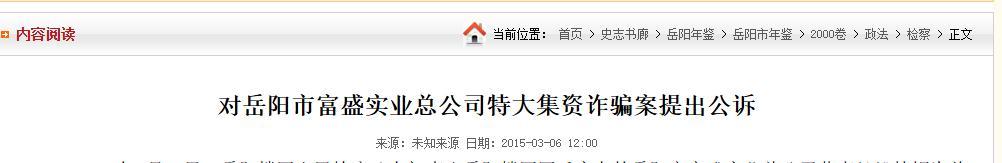 《對岳陽市富盛實業總公司特大集資詐騙案提出公訴》——岳陽市情網