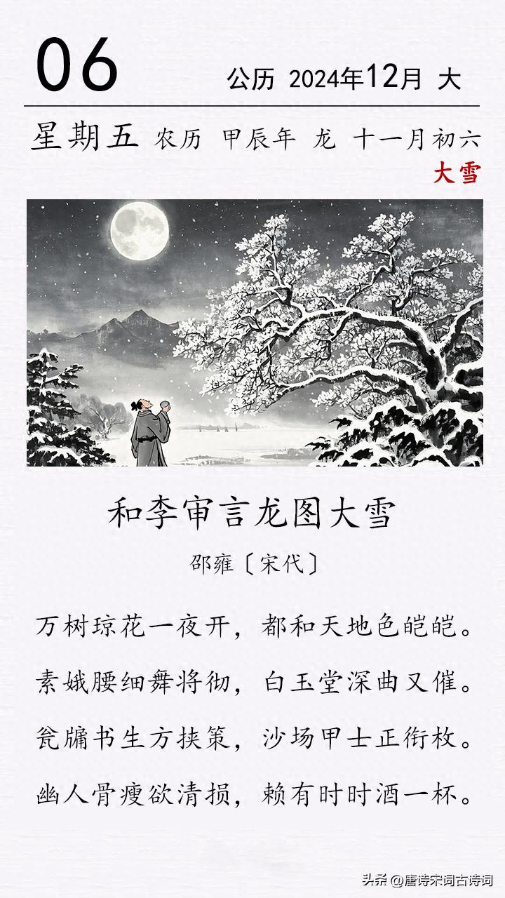 這是宋代詩人邵雍的一首大雪節氣詩。