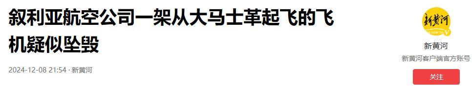 《敘利亞航空公司一架從大馬士革起飛的飛機疑似墜毀》——新黃河