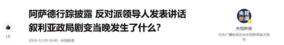 參考信源:《阿薩德行蹤披露 反對派領導人發表講話 敘利亞政局劇變當晚發生了什麼?》