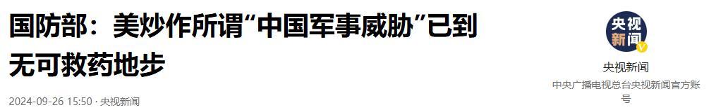 《國防部:美炒作所謂“中國軍事威脅”已到無可救藥地步》——央視新聞