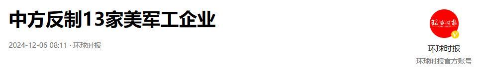 《中方反制13家美軍工企業》——環球時報