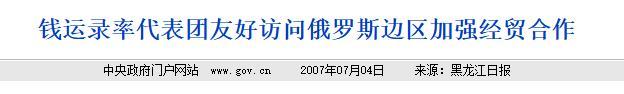 《錢運錄率代表團友好訪問俄羅斯邊區加強經貿合作》——中國政府網