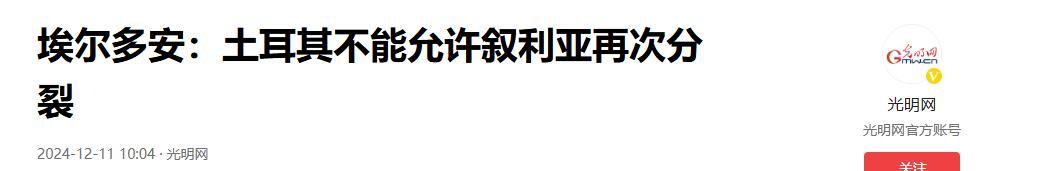 參考信源:《埃爾多安:土耳其不能允許敘利亞再次分裂》2024-12-11 10:04·光明網
