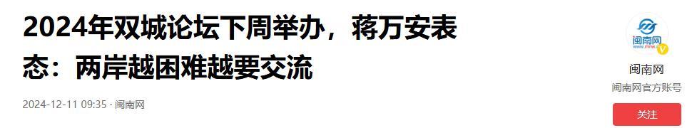 《2024年雙城論壇下週舉辦,蔣萬安表態:兩岸越困難越要交流》——閩南網