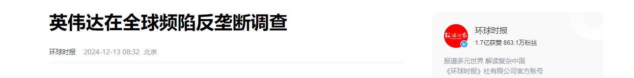 《英偉達在全球頻陷反壟斷調查》環球時報2024-12-13 08:32北京