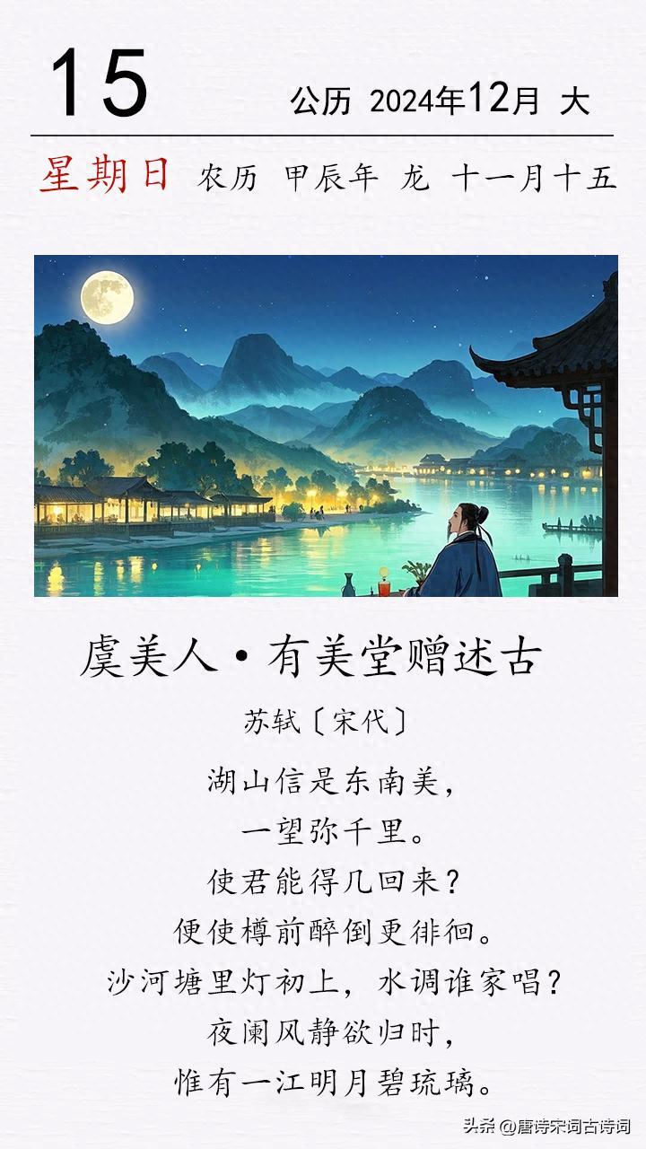 景色越美,人越孤獨。杭州太守陳襄,字述古,對於蘇軾格外照顧,當時蘇軾擔任杭州通判。宋神宗熙寧七年(1074),陳襄由杭州調知南都(商丘),即將離開美麗的杭州,對於杭州的山山水水,“一望彌千里”,深情款款,戀戀不捨。