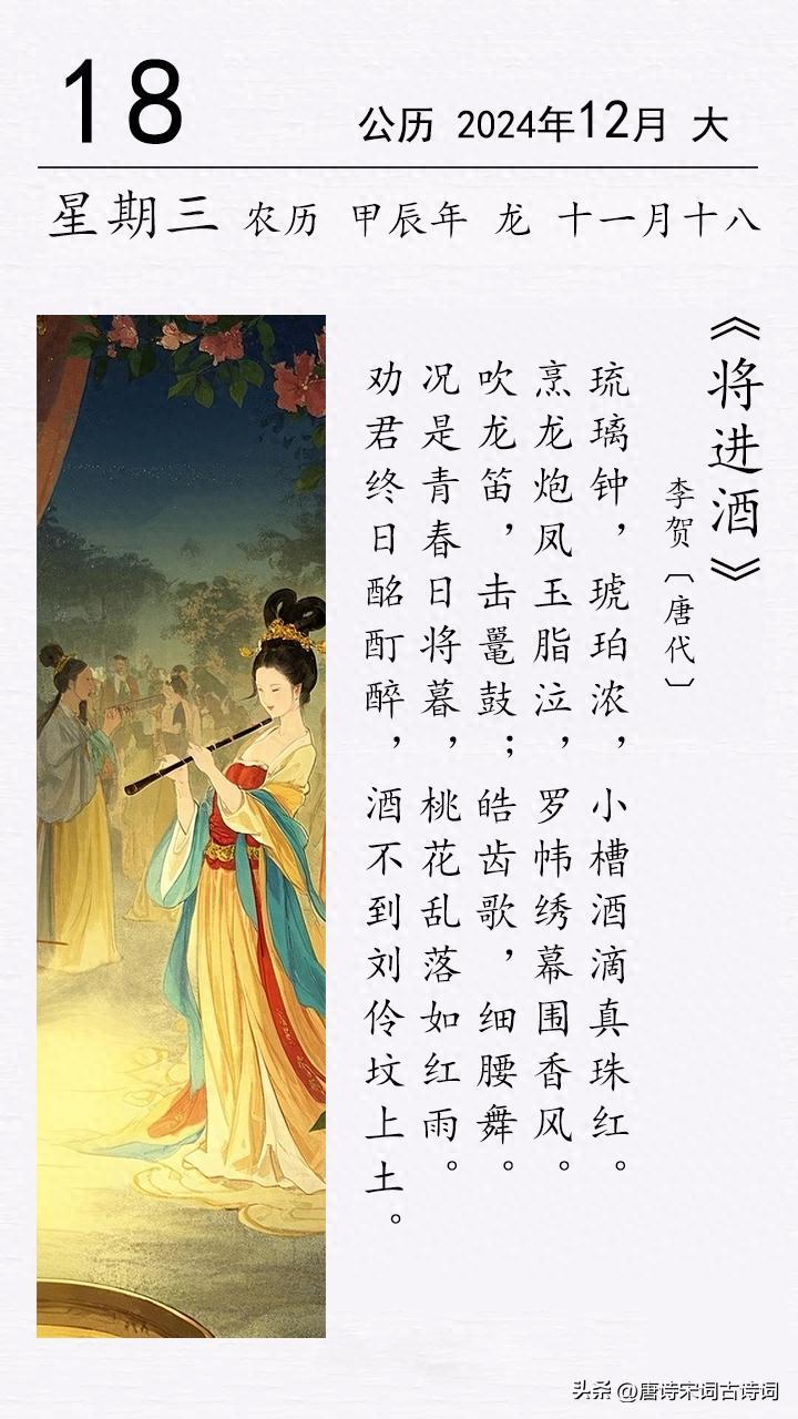 三是菜好。李賀說菜好,不直接說青菜炒木耳、扁豆燒肉之類的一般菜餚,而是“烹龍”煮龍肝、“炮鳳”爆鳳髓、“玉脂泣”炒油脂之類的菜,可謂聞所未聞,見所未見。正如《紅樓夢》裏的道道名菜,沒見過世面的根本寫不出來。同樣,見慣了皇家祭祀,才得以知道那麼多匪夷所思的名菜。這些都成爲李賀寫作的素材,豐富了詩歌的內容,拓寬了詩歌的領域。你也就能理解爲什麼李賀詩中那麼多顏色,那麼多菜餚。菜不但好喫,還好看,真是將菜做成了藝術品。這麼多名貴的菜下酒,豈能不多飲幾杯。