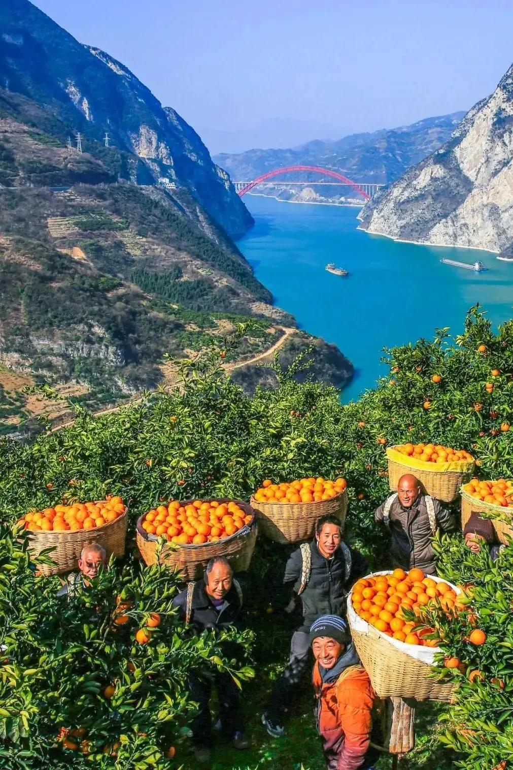 ▲湖北宜昌,人們正在採摘黃燦燦的橙子。