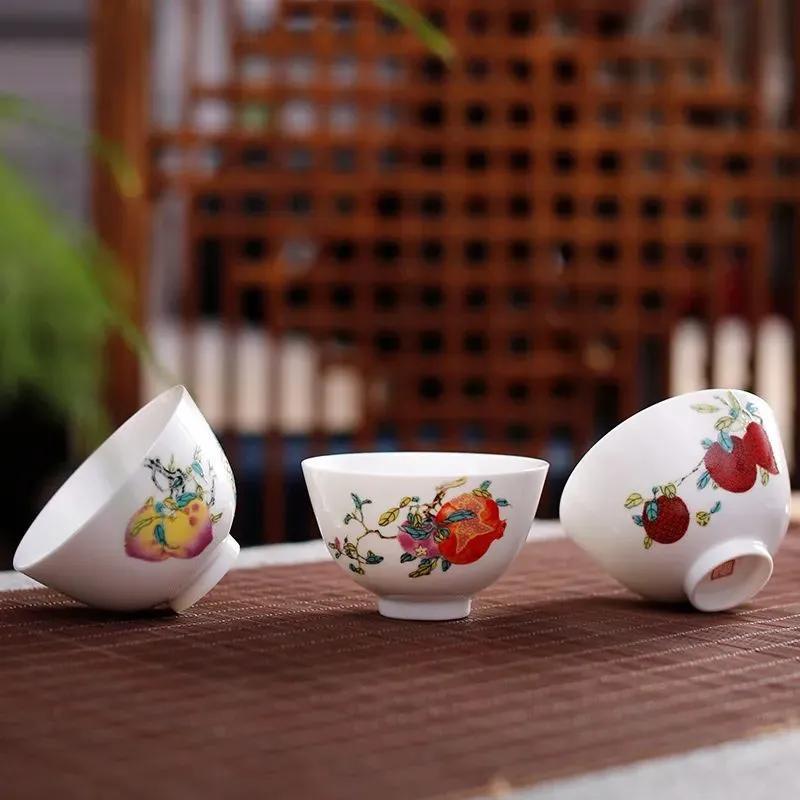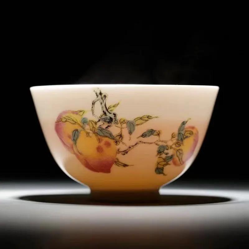 三多紋系列單杯,則分別繪桃子、石榴、荔枝,三個杯子恰好組成三多紋。
