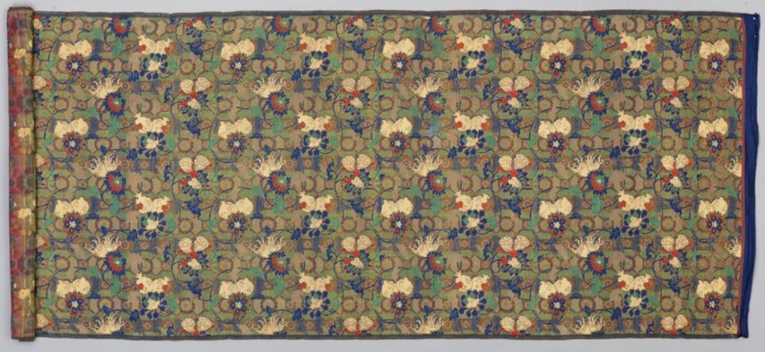 ▲清乾隆 藍色地福壽三多龜背紋錦 故宮博物院藏