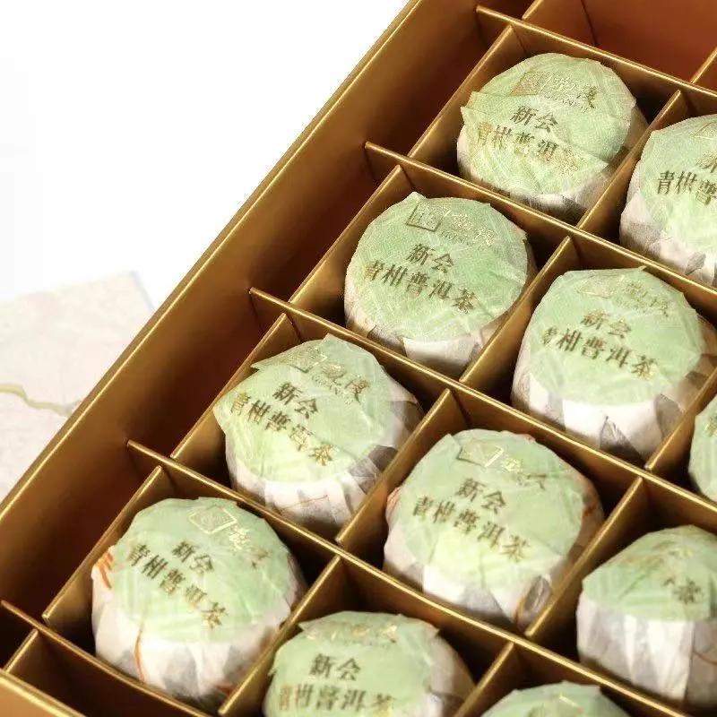 新會青柑與布朗山普洱組合,增加了茶葉的滋味層次,柑橘的清香與普洱的馥郁相互融合,口感更加豐盈。