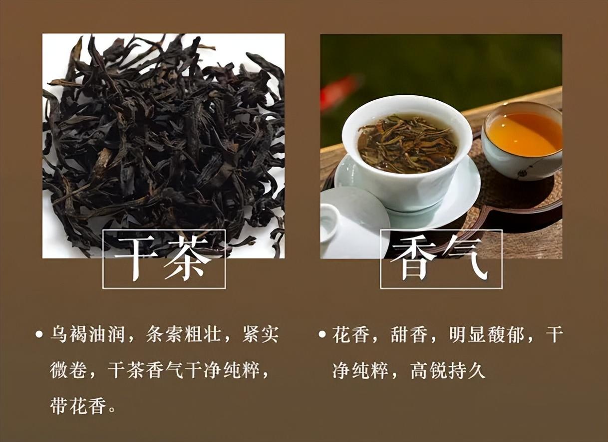 鳳凰單叢鴨屎香:帶有明顯的花香、甜香,泡出來的茶湯色澤金黃,清澈明亮,口感濃醇,回甘悠長。