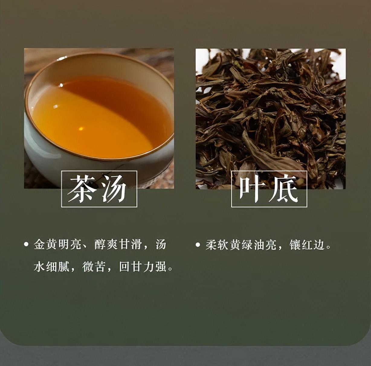 鳳凰單叢具有天然花香,它的湯色爲金黃至棕黃,口味清雅濃醇、回甘力強,以“形美、色翠、香郁、味甘”著稱。