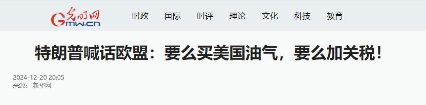 參考信源:《特朗普喊話歐盟:要麼買美國油氣,要麼加關稅!》2024-12-20 20:05 來源: 新華網