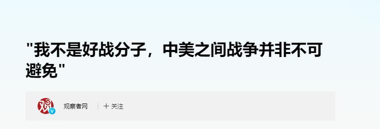 參考信源:《"我不是好戰分子,中美之間戰爭並非不可避免"》觀察者網