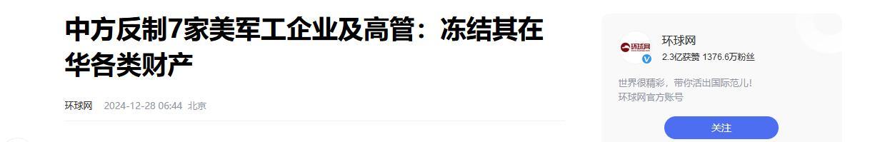 參考信源:《中方反制7家美軍工企業及高管:凍結其在華各類財產環球網2024-12-28 06:44北京》