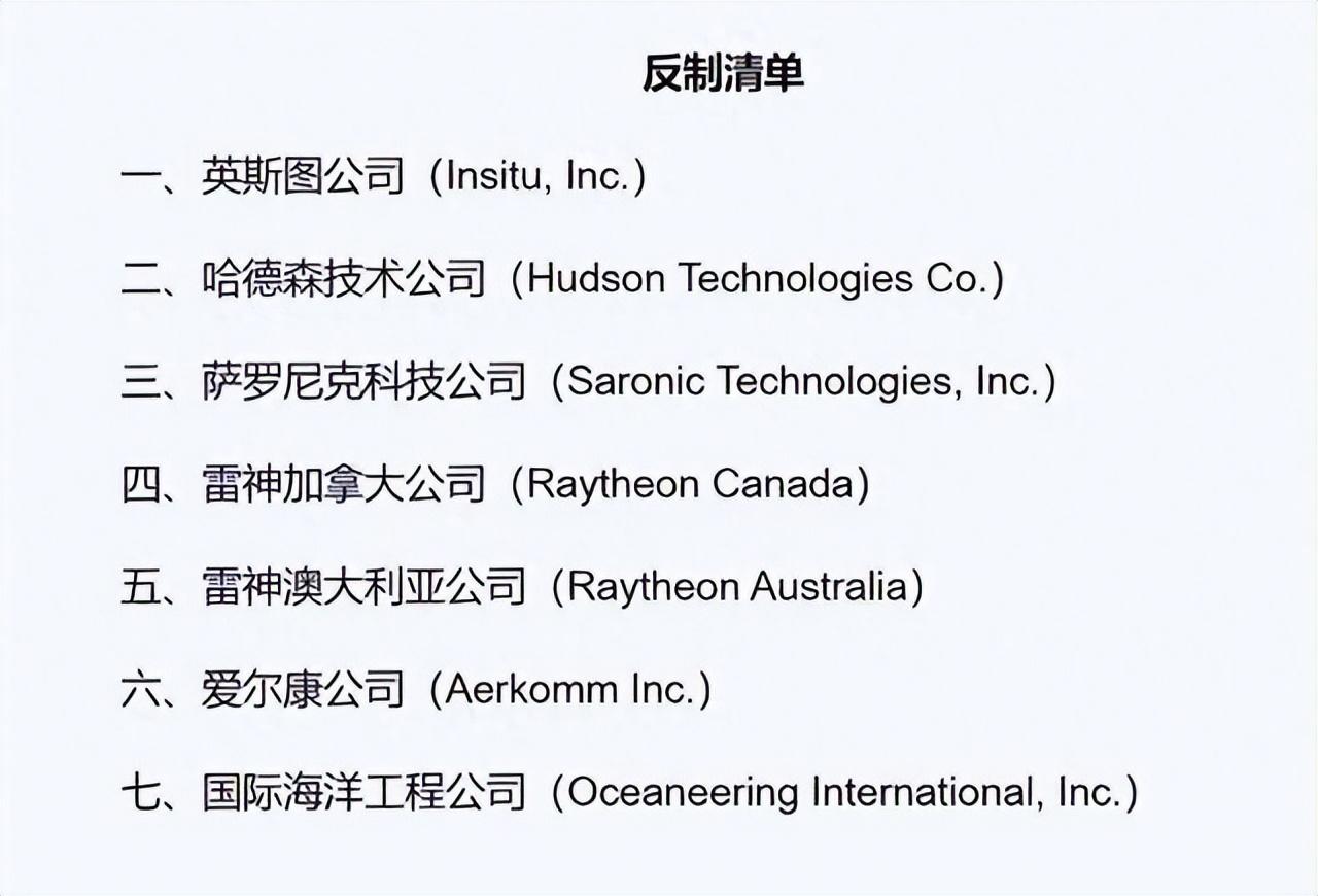這次我們外交部直接表示對於美國的七家軍工企業進行制裁,直接凍結了這些公司的財產,與這些公司的合作項目也直接暫停了