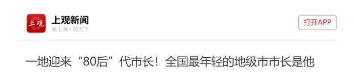 參考信源:《一地迎來“80後”代市長!全國最年輕的地級市市長是他》上觀新聞