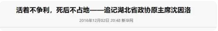 《活着不爭利,死後不佔地,--追記湖北省政協原主席沈因洛》新華網