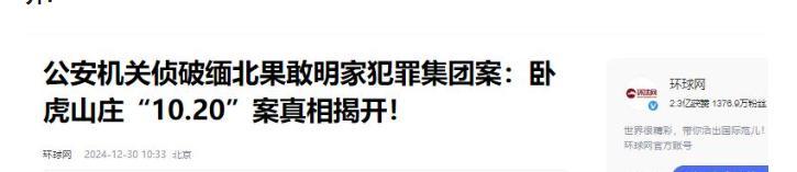參考信源:《環球網——公安機關偵破緬北果敢明家犯罪集團案:臥虎山莊“10.20”案真相揭開!》