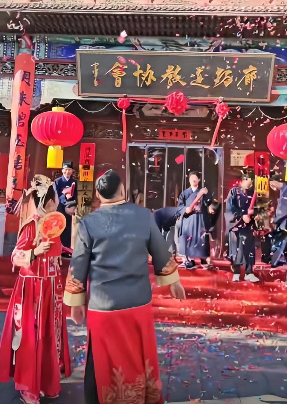 與傳統婚禮相同的是,在道教的婚禮之中也是佈滿了紅色的元素,道館內部的裝飾可謂是喜氣洋洋,上面還寫着“廊坊道教協會”的黑底金色招牌