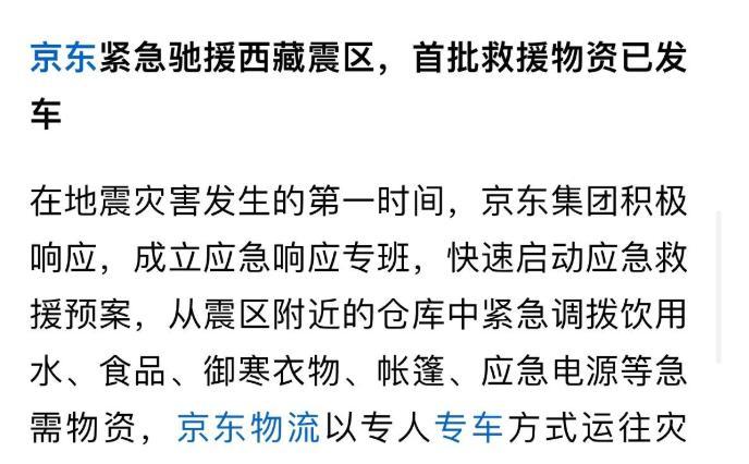 很多企業也是第一時間馳援西藏,字節、騰訊等衆多企業紛紛捐款,劉強東的援助方式獲得了很多的稱讚。