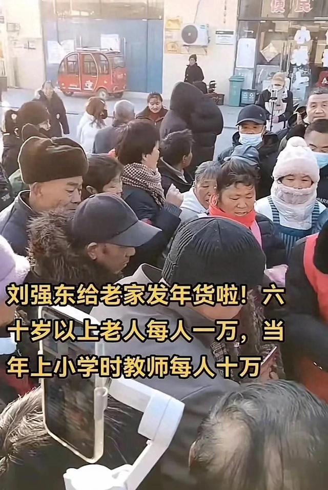 在2024年的時候,劉強東直接帶着大量的羽絨服以及一些超市的禮盒前往自己的家鄉。