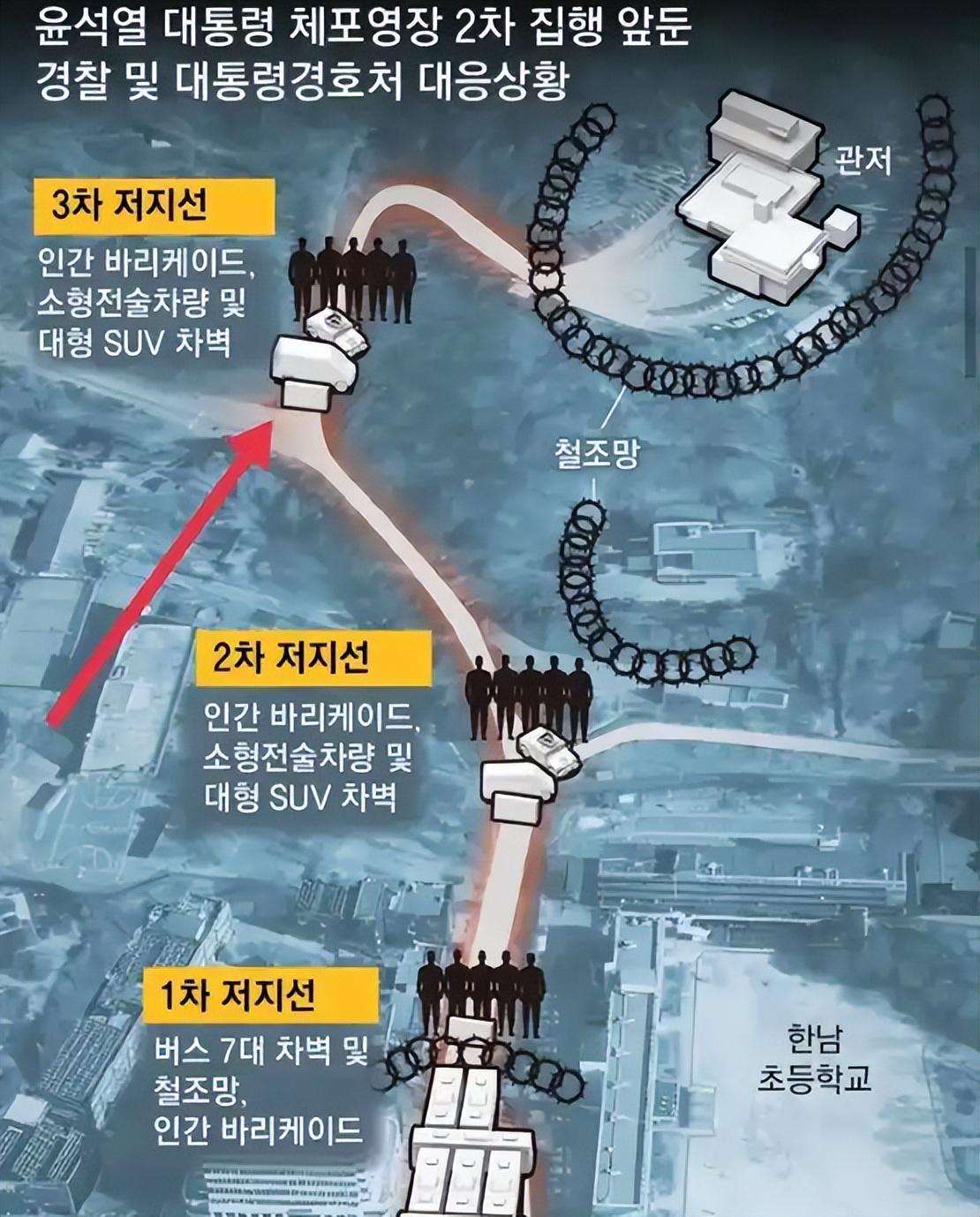 根據相關媒體報道,當時支持尹錫悅的人員達到了6000人,爲了避免一些不必要的麻煩,在逮捕尹錫悅的時候採用前後夾擊的方式。