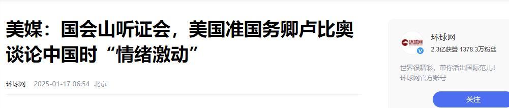 參考信源:《美媒:國會山聽證會,美國準國務卿盧比奧談論中國時“情緒激動”》環球網2025-01-17 06:54