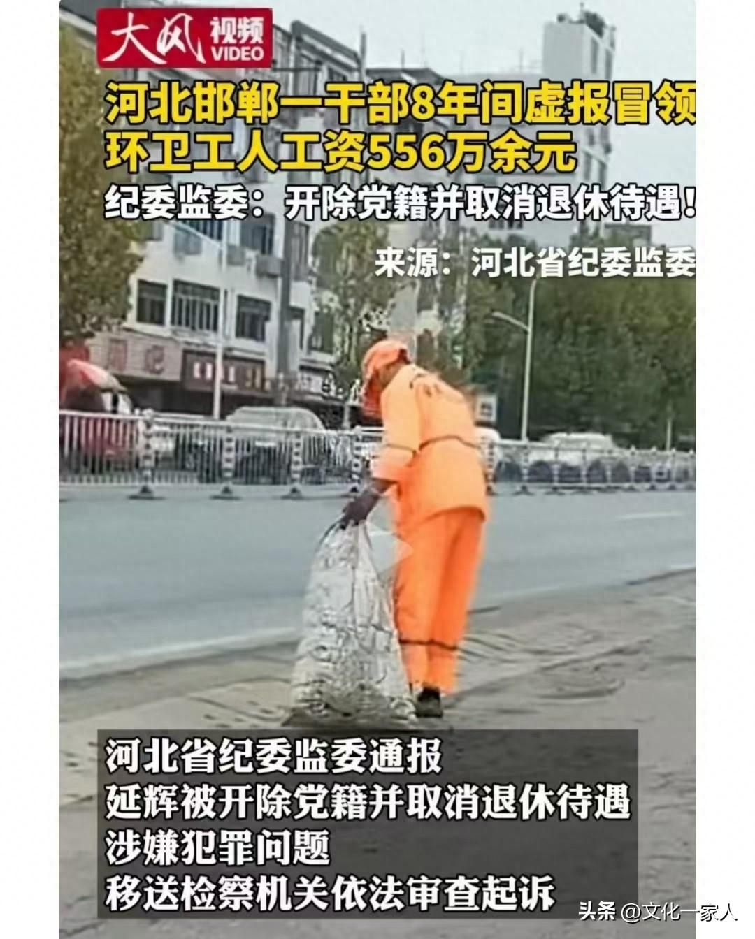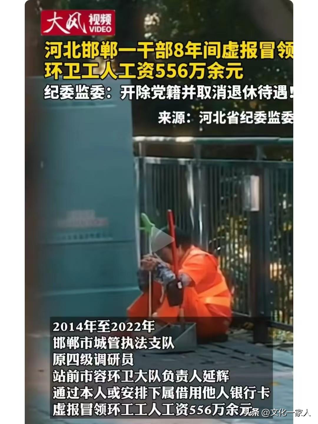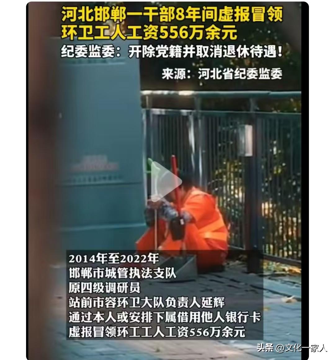 邯鄲某環衛大隊長,8年時間,虛報冒領工資556萬。