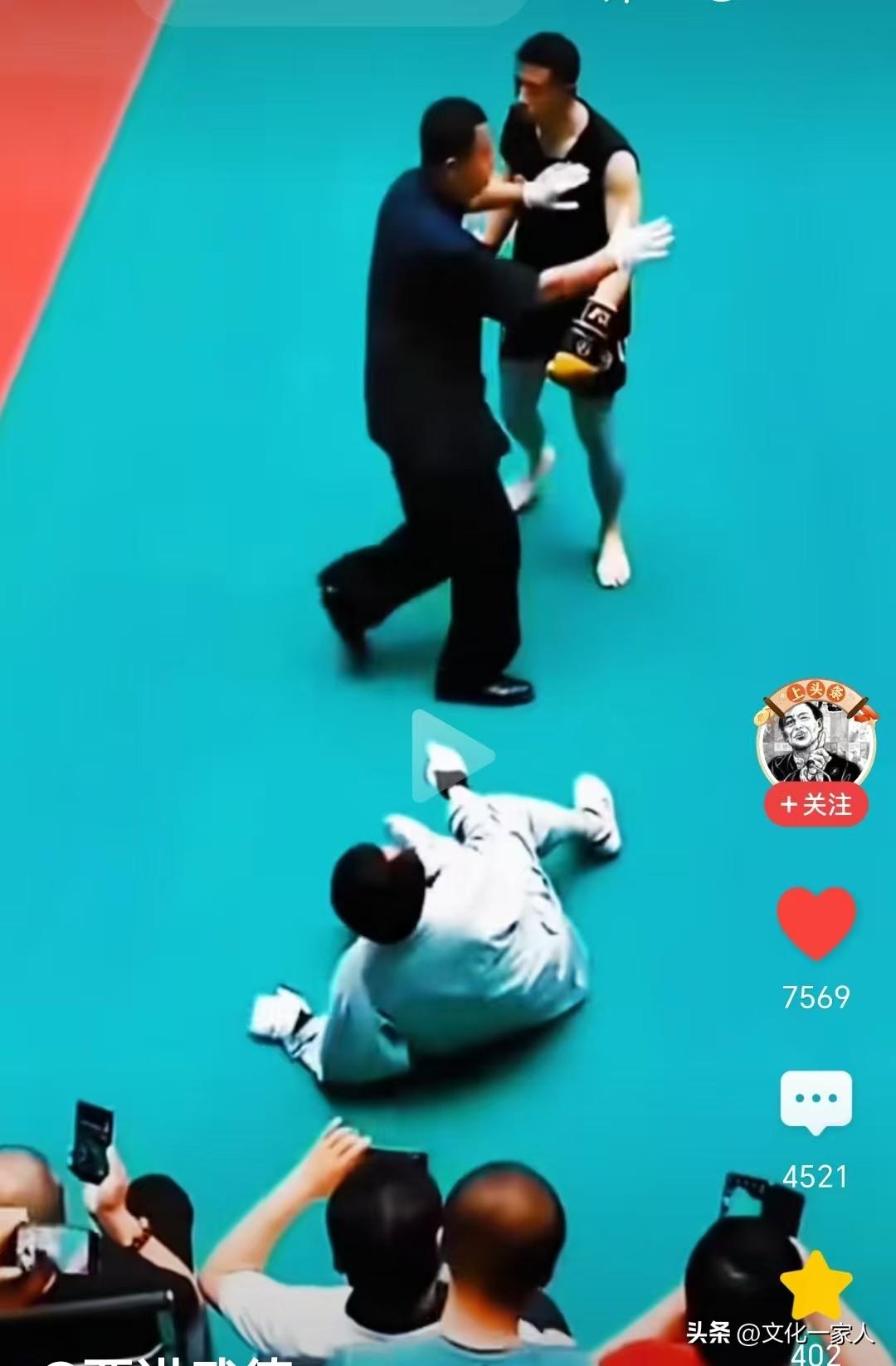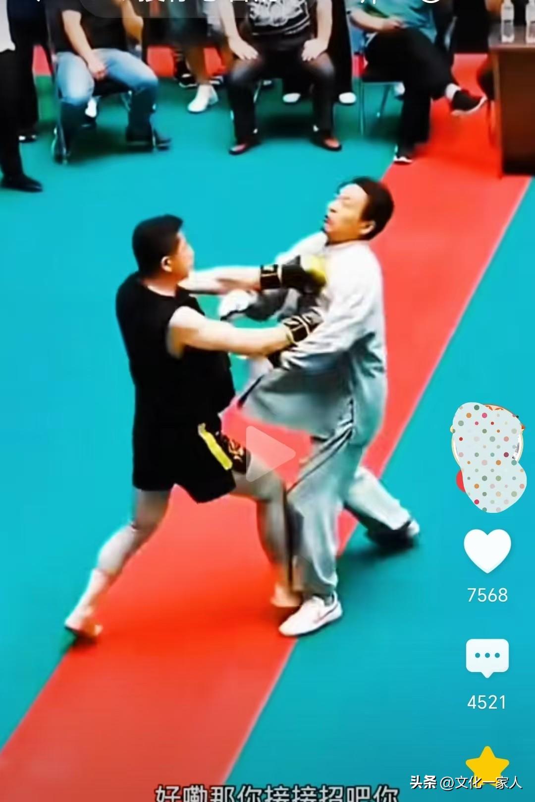 與其對擂的小夥子,不過是位業餘搏擊愛好者。與號稱武林大師的馬先生相比,顯然不在一個級別上。