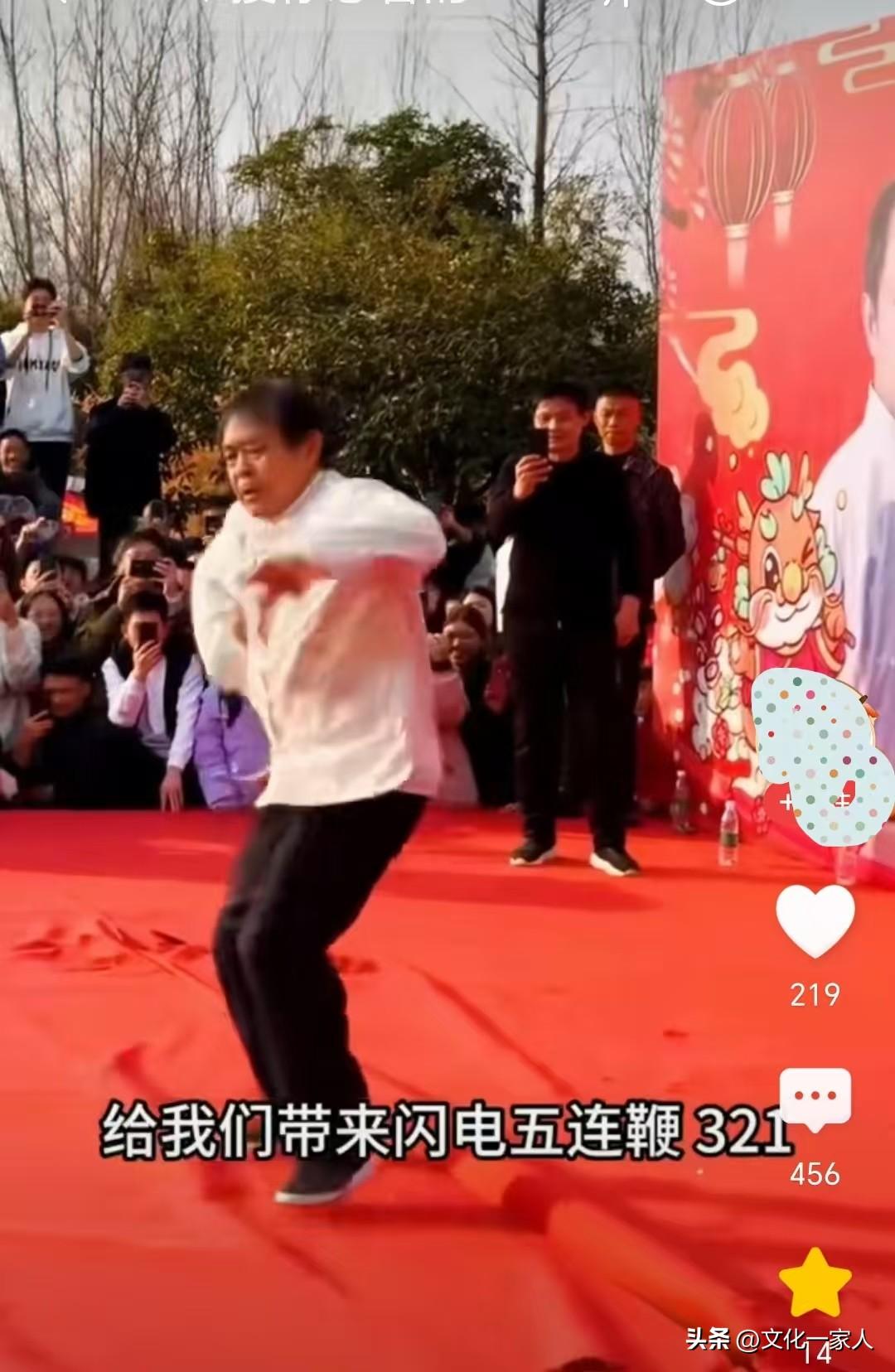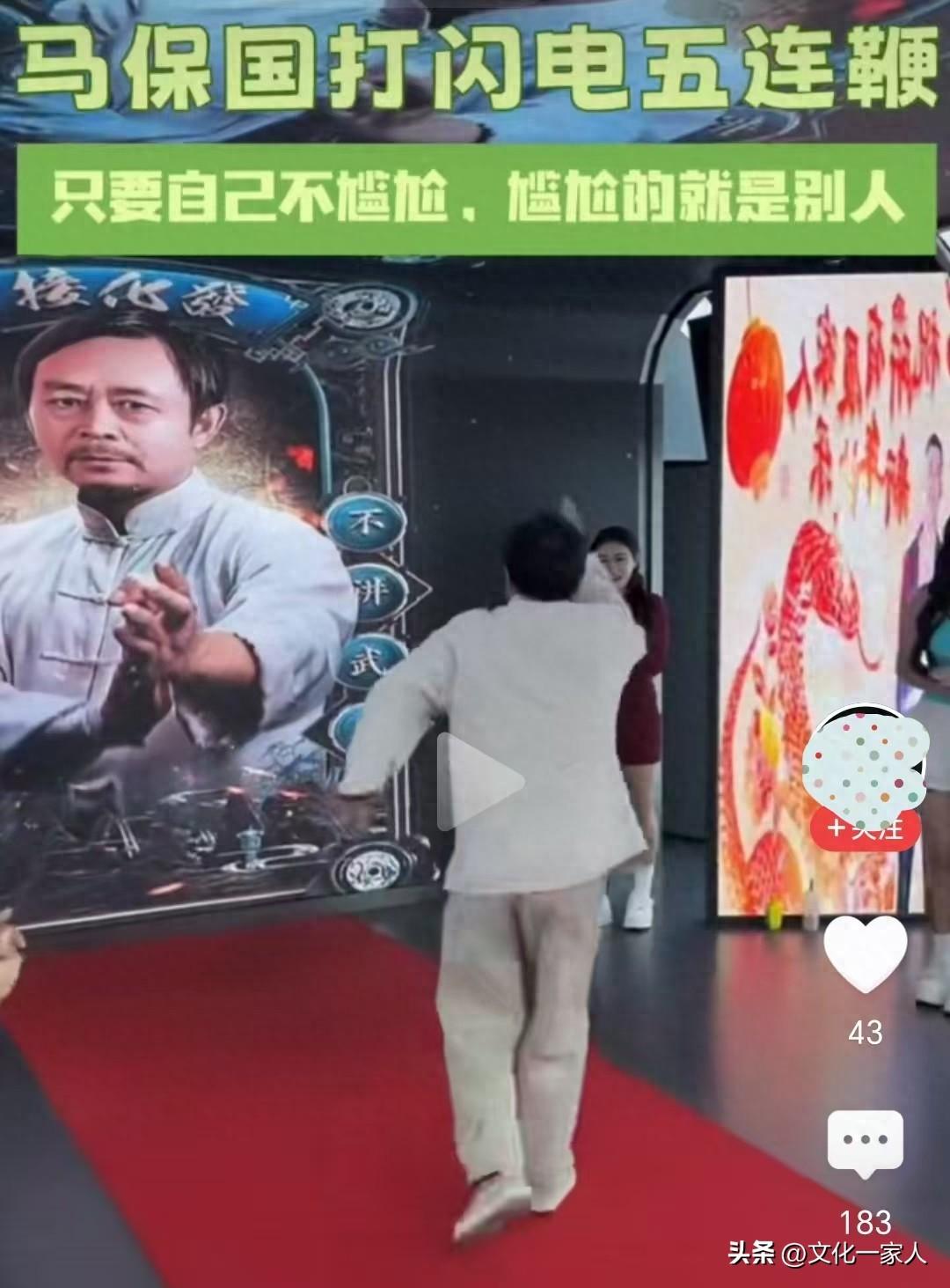 接受歡呼之後,馬先生便開始表演他的武林絕學“閃電五連鞭”和“接化發”。