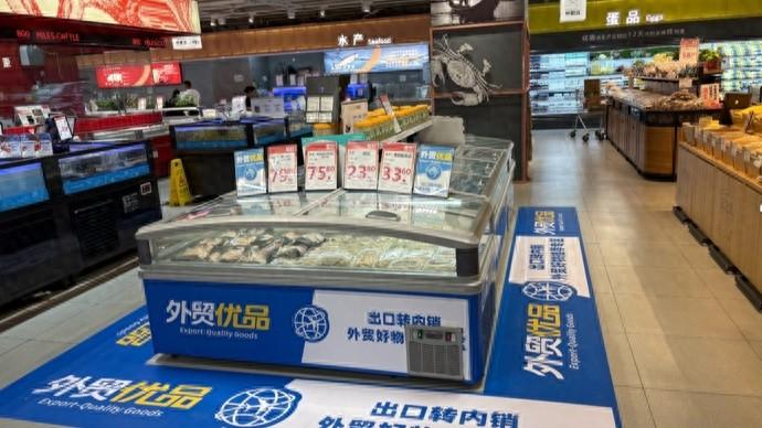 世紀聯華中環店內,首批到貨的野生熟凍鳳尾蝦引發搶購。家住靜安的王女士對比後感嘆:“同樣大小的進口蝦要貴三成!外貿優品讓我們以更低的價格享受到了高品質商品。”現場試喫臺前,剛解凍的魷魚圈肉質彈牙,帶着東海特有的鮮甜。“這是用出口歐盟的標準做的,連冰衣厚度都嚴格控制。”浙江供應商代表介紹道。