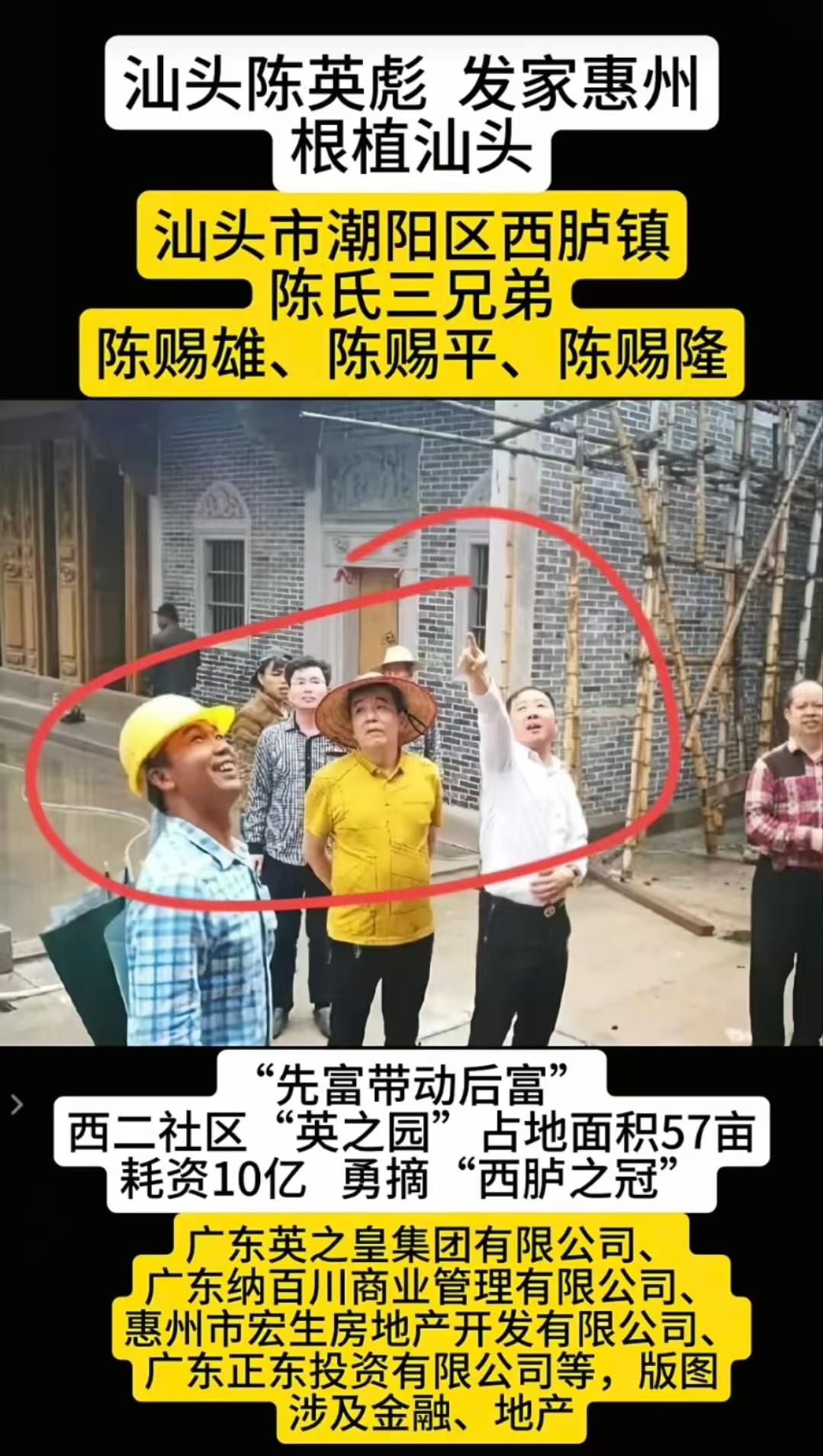 而截止2008年,陳英彪的二兒子和三兒子耗費10000萬元,在惠州成立了房地產開發有限公司。
