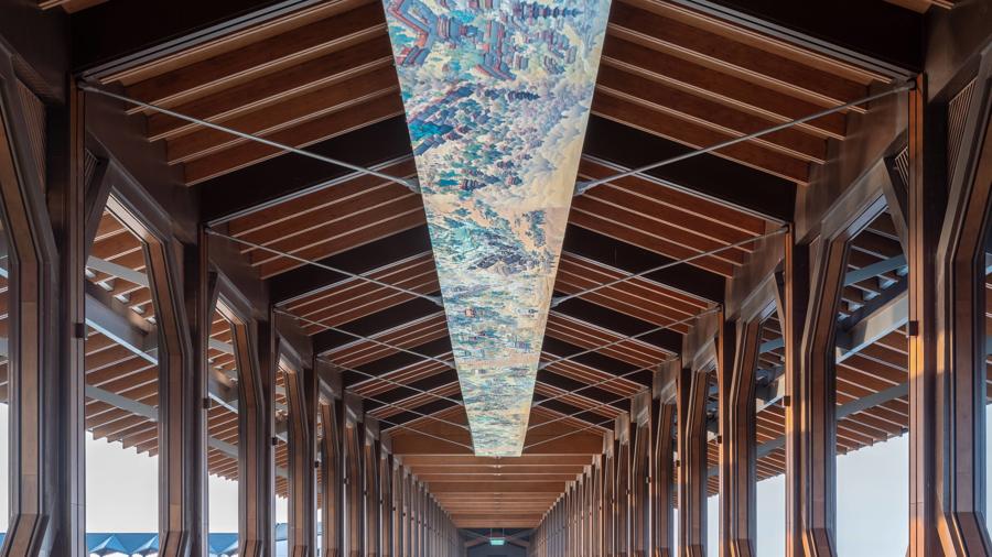 方廳水院位於滬蘇浙兩省一市交界處的太浦河上,地處長三角原點(青浦金澤鎮、吳江黎裏鎮、嘉善西塘鎮交界),是水鄉客廳核心地標。總建築面積約10.4萬平方米,由主會館及滬、蘇、浙、皖四座主題展館構成,通過三座跨河步行橋無縫連接。採用新江南風格四合院形制,融合粉牆黛瓦、木紋鋁板等傳統與現代元素,展現江南水鄉與現代技術的交融,又蘊含長三角三省一市向心匯聚、一體發展的空間意向。未來,方廳水院將打造成爲世界級湖區的標誌性節點、長三角區域一體化綜合展示窗口。