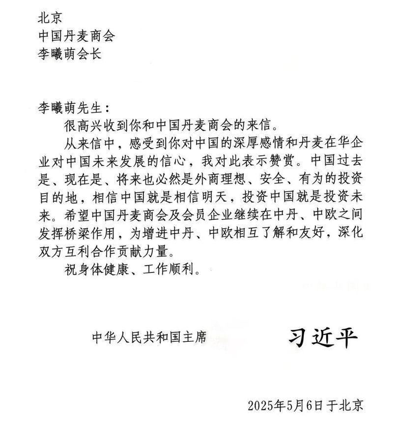 據新華社報道,近日,國家主席習近平復信中國丹麥商會負責人,勉勵中國丹麥商會及會員企業爲增進中丹、中歐友好和深化互利合作作出新貢獻。