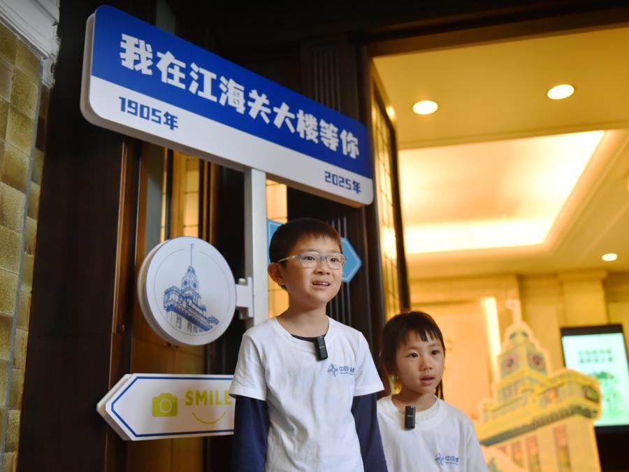 “這棟‘大明星’建築從1925年開始建造至今已近百年,當年耗資430萬兩白銀呢!”在上海中山東一路13號江海關大樓前,一個稚嫩的嗓音正驕傲地向大家介紹着這座上海的地標建築。