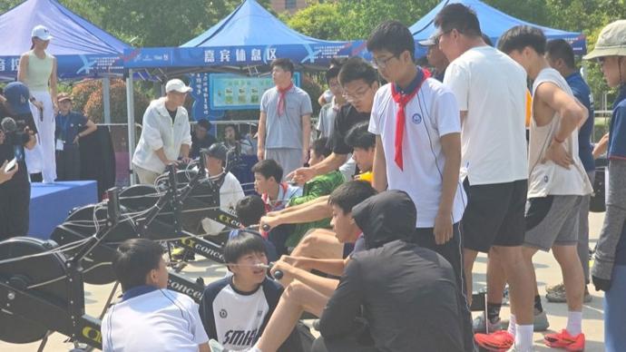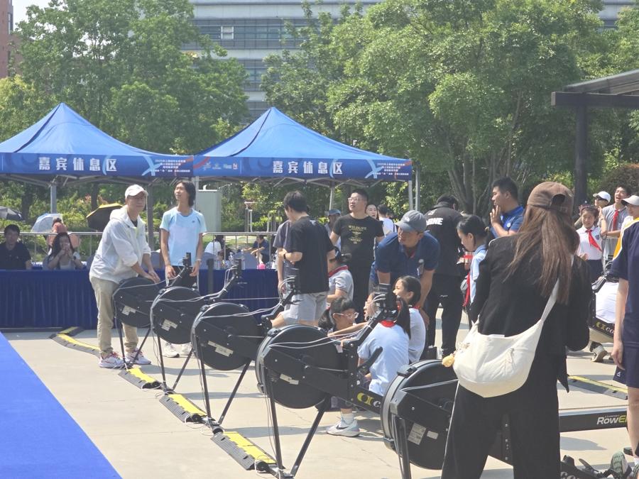 “預備——開始!”隨着指令響起,12歲的浩浩(化名)緊握划船器手柄,額角沁出汗珠卻始終目光專注。看臺上,浩浩母親舉起手機記錄全程:“這是他第一次在這麼多人面前完成比賽,划船器訓練讓他學會了堅持。”比賽中有18名特殊的選手,他們來自上海閔行區同星關愛服務中心(古美路街道孤獨症援助關愛中心)與古美陽光之家,在教練與志願者的陪伴下,順利完成了划船器的比賽。據悉賽事特別設置安全員,爲特殊選手托起體育夢想。
