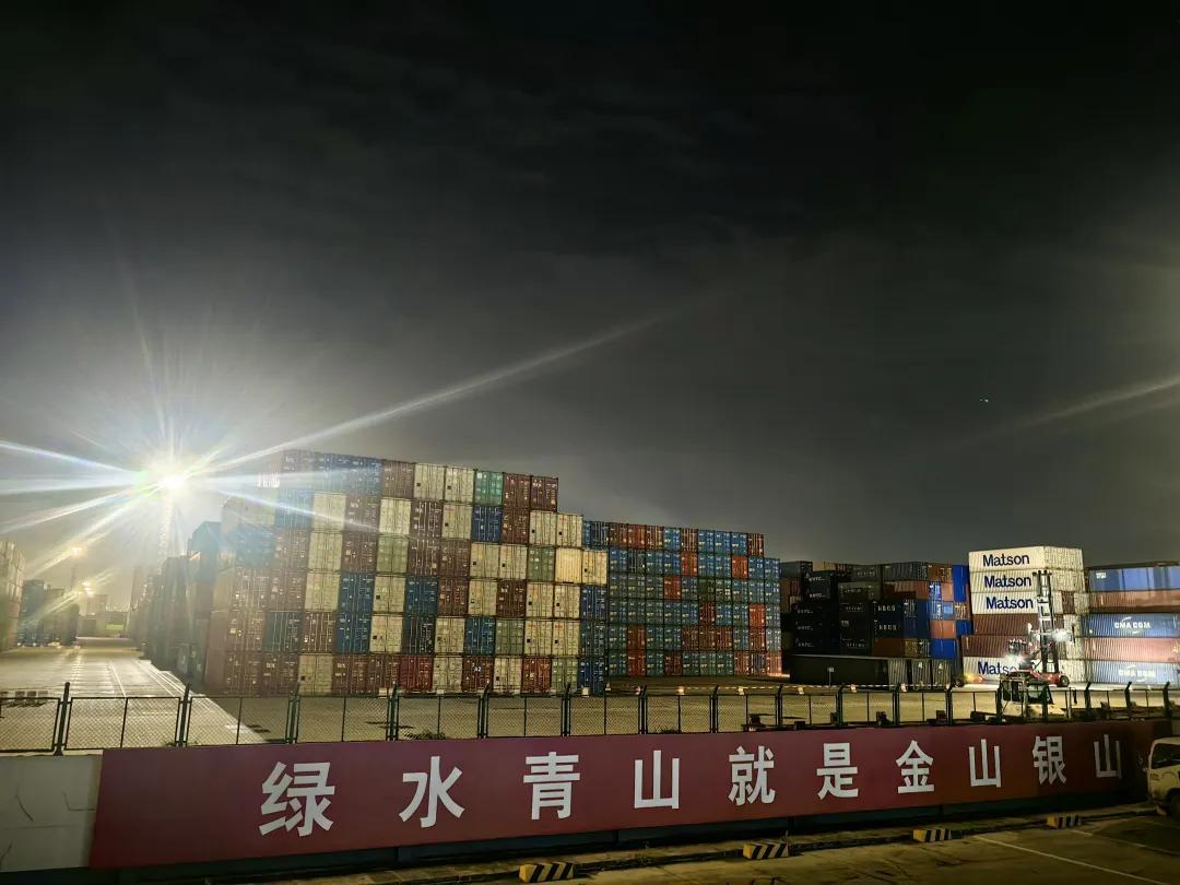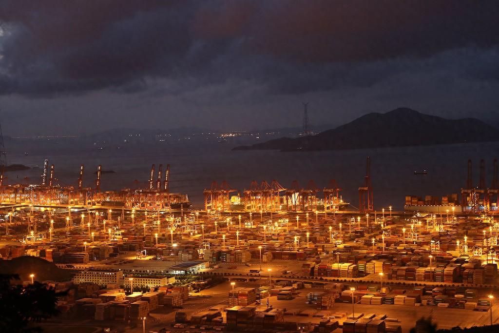 夜幕下的寧波舟山港核心港區——北侖港區,成了大卡車的海洋。